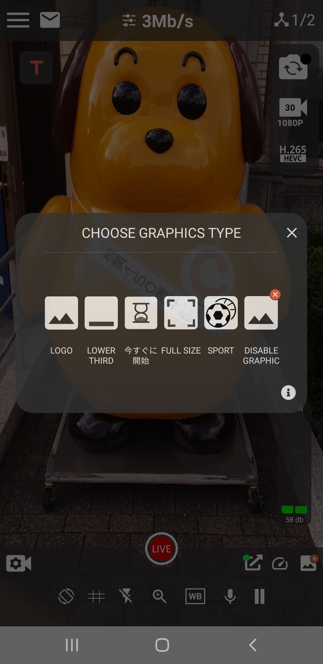 1080p FHD H.264配信に加え4K H.265配信にも対応、WIFIまたは4G LTEや5Gといったキャリア回線或いはその両方(ボンディング)によるネットワーク帯域確保機能を有し、安定したライブ配信を安価に実現する(BASICは無償)。