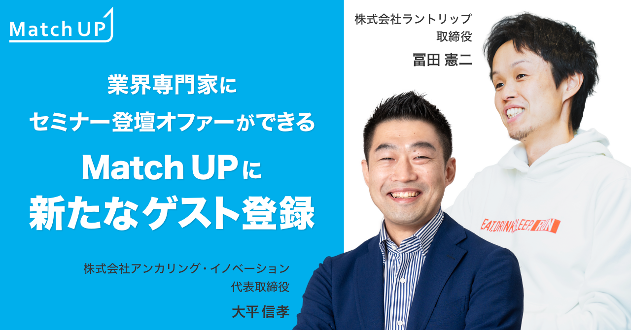 当社は、国内最大級のオンライン展示会「ITトレンド」や、ビジネス動画プラットフォーム「チラヨミ」を通して、多くの企業様、業界専門家の方とのお取引があり、自社のマーケティングノウハウを活かし、このような課題を解消するため、業界専門家にセミナー登壇オファーができるマッチングプラットフォーム「Match UP」の提供を開始いたしました。