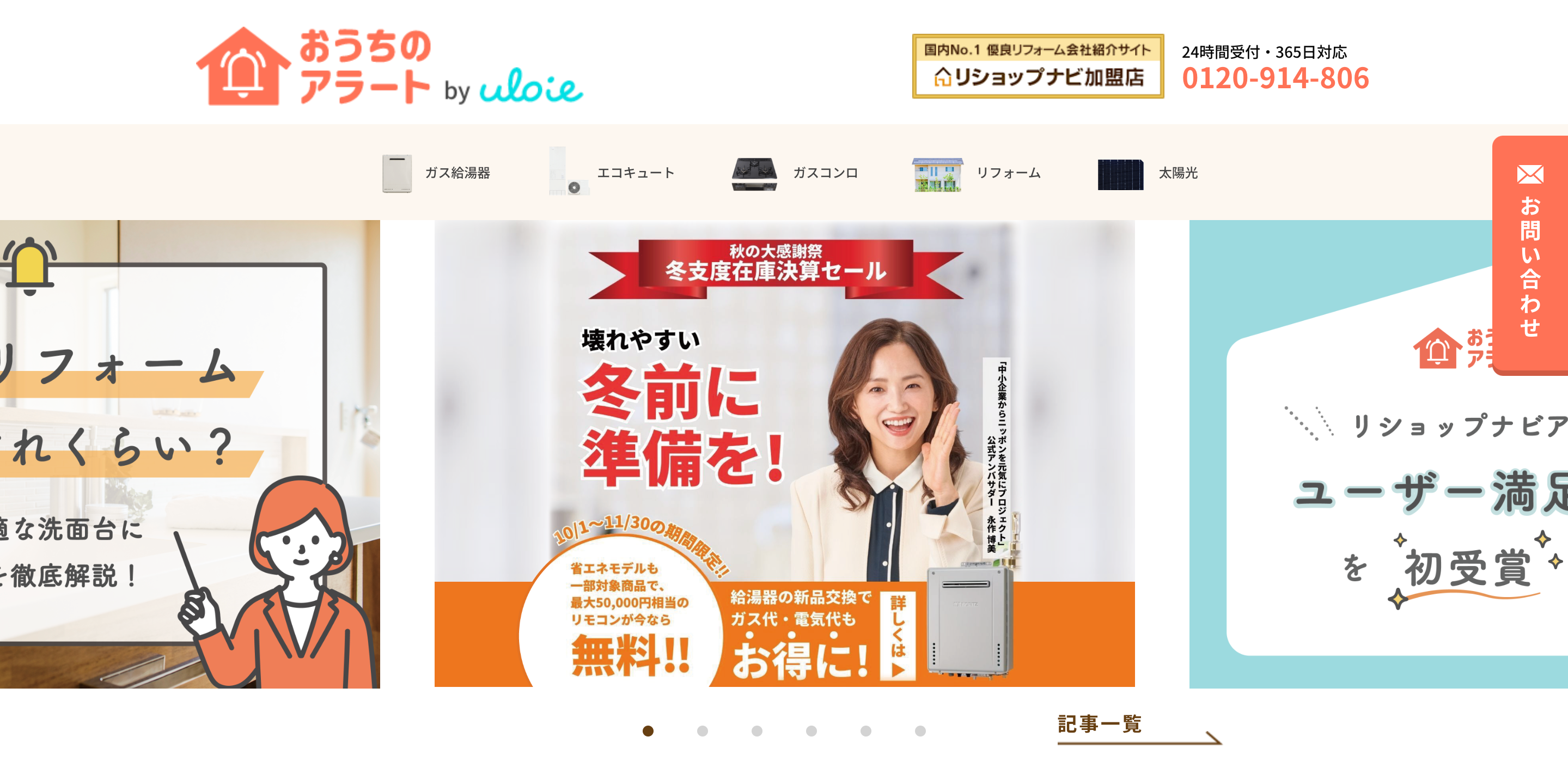 「おうちのアラート」は、株式会社ウルオイエが運営する住宅リフォーム全般を取り扱うWebサービスです。