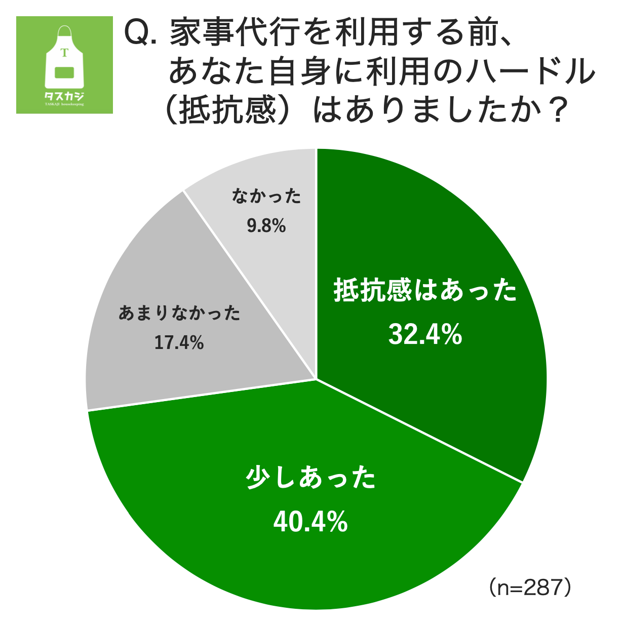 家事代行の利用前に、抵抗を感じている人は多く、「抵抗感があった」「抵抗感が少しあった」と回答した人は72.8%にのぼった。