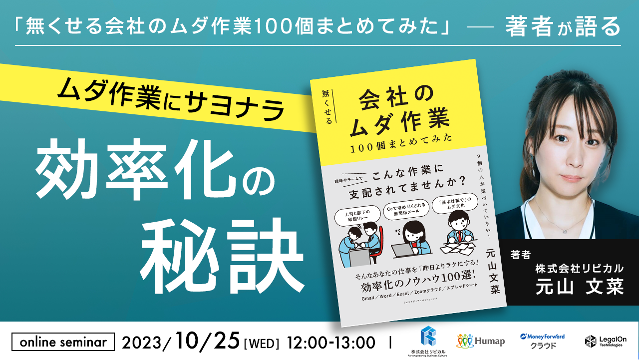 本セミナーでは、著書「無くせる会社のムダ作業100個まとめてみた」の著者が登壇し、日常業務に潜むムダ作業とその効率化方法について詳しくお伝えします。