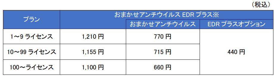 ※おまかせアンチウイルス相当の機能とEDR機能を含んだ料金です。