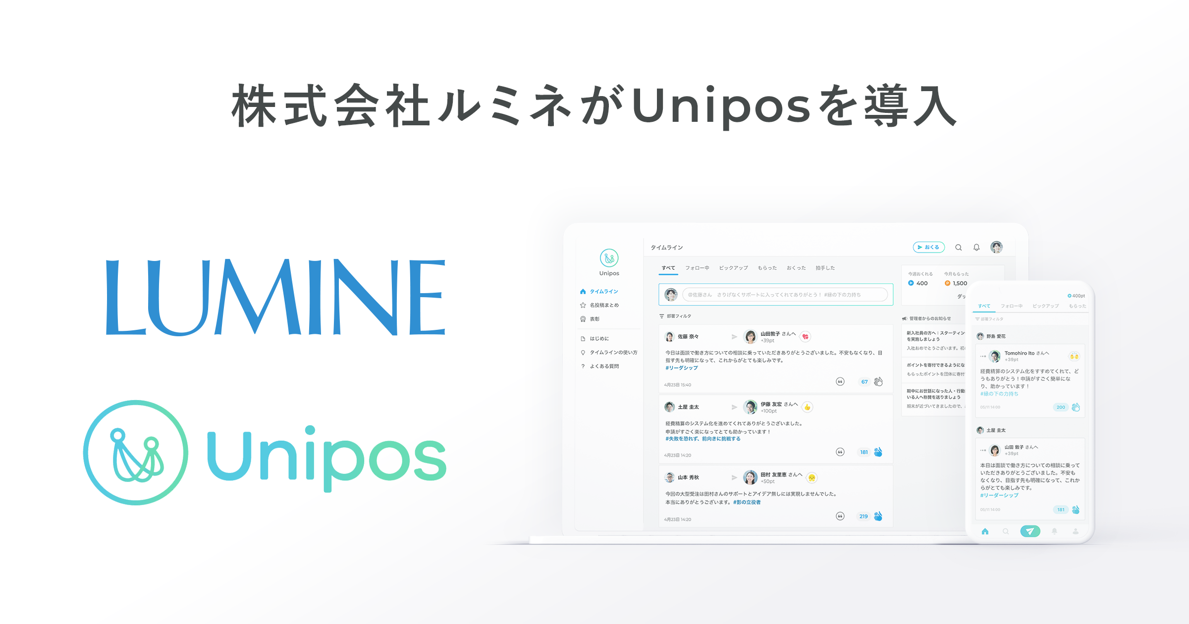 Uniposは社内で“良い行動”をしたスタッフに、感謝・称賛のメッセージと少額のボーナス(ピアボーナス®)を送ることで全社に見える化する仕組みです。現在370社以上の企業様がUniposを導入し、組織風土改革に取り組んでいます。ルミネもまたUniposを通じて行う組織風土改革が、同社が目指す世界の実現に必要だとサービスに共感いただき、全社で導入されるに至りました。