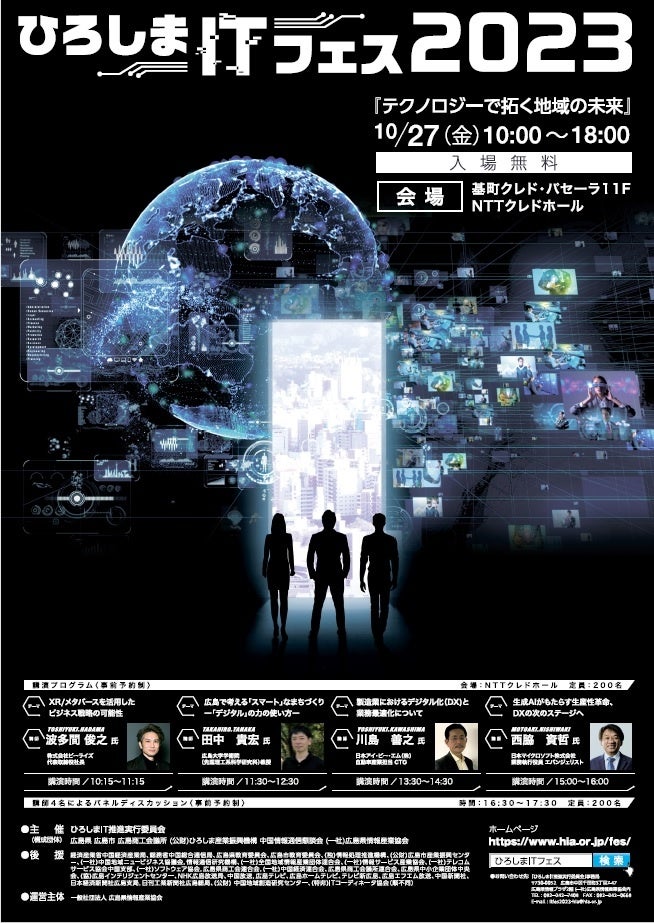 デジタルテクノロジーの活用が、地域社会や企業の未来をどのように切り拓くか考え、想像し、体感していただくことがテーマ。広島にフォーカスし、ITベンダーによる新たな技術やサービスの展示、講演やパネルディスカッションなどを企画しました。