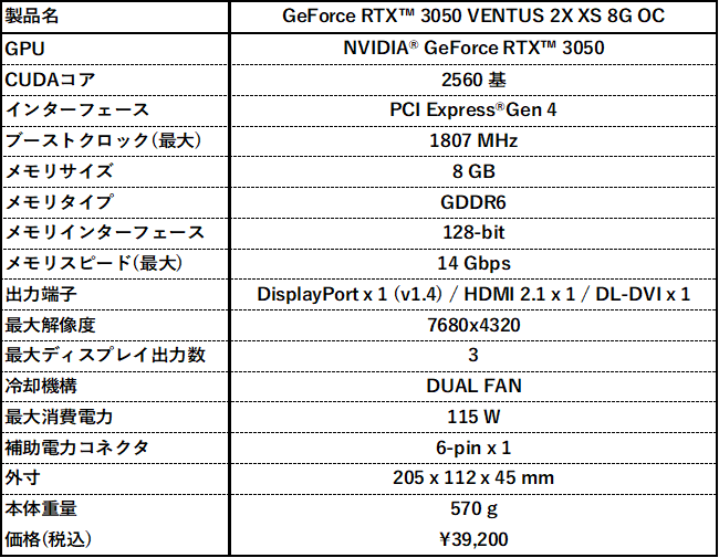 https://jp.msi.com/Graphics-Card/GeForce-RTX-3050-VENTUS-2X-XS-8G-OC