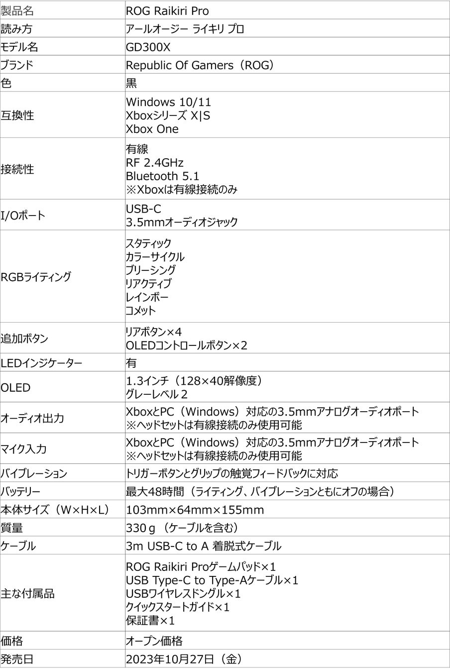 ASUS JAPAN株式会社は、ゲーミングブランドRepublic Of Gamersより、PCや次世代Xboxコンソールに対応した無線PCコントローラーの「ROG Raikiri Pro」を発表しました。