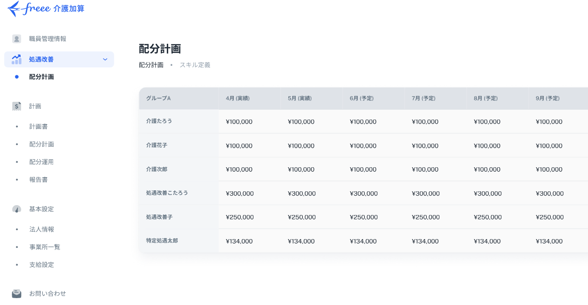 ・freee介護加算において、処遇改善加算の従業員への多様な配分ルールの自動計算に対応できるようになりました