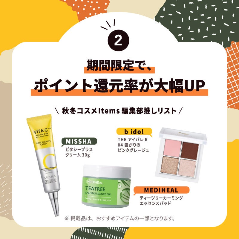 いつでもご購入金額(税抜)に応じたポイントを還元する『LIPSショッピング』。「LIPSフェスタ 2023 Autumn」の期間中は、対象商品のご購入時にポイント還元率がUPします。
