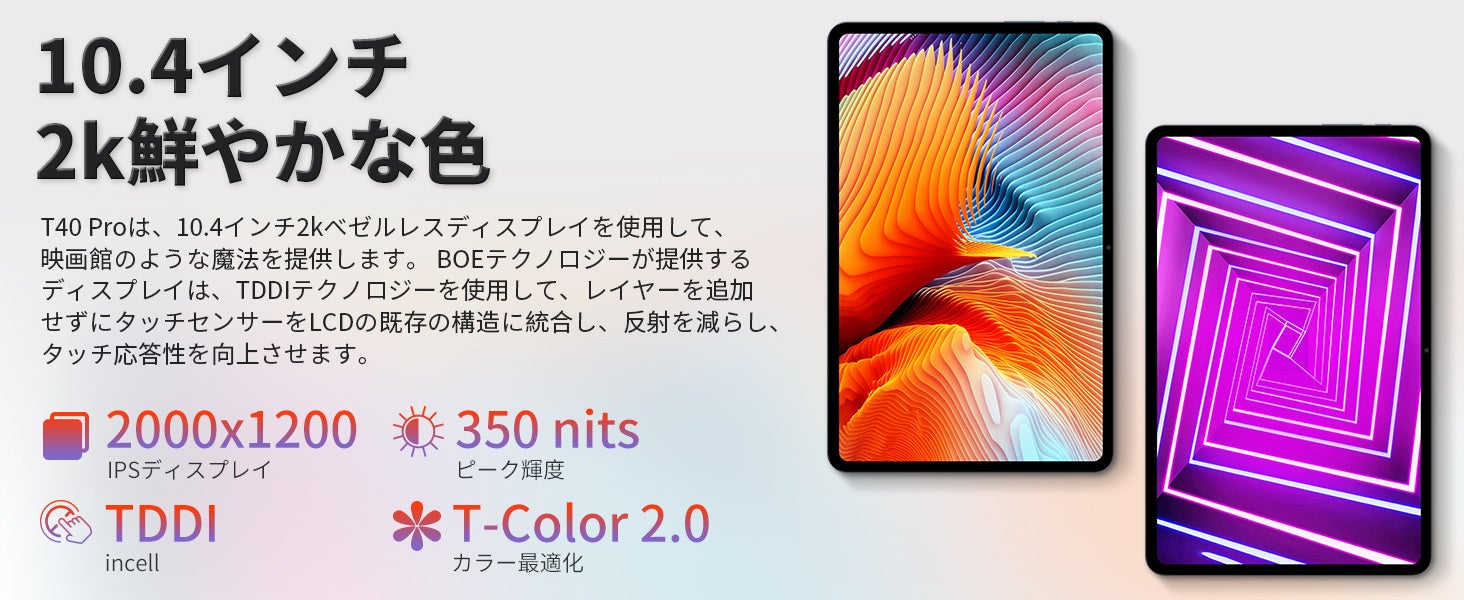 10.4インチ / Android 12 / 8GB+128GB+1TB拡張 / 2K FHD IPSディスプレイ / Widevine L1対応 / 13MP+8MPカメラ / 18W PD急速充電 / 4G LTEモデル / GPSサポート