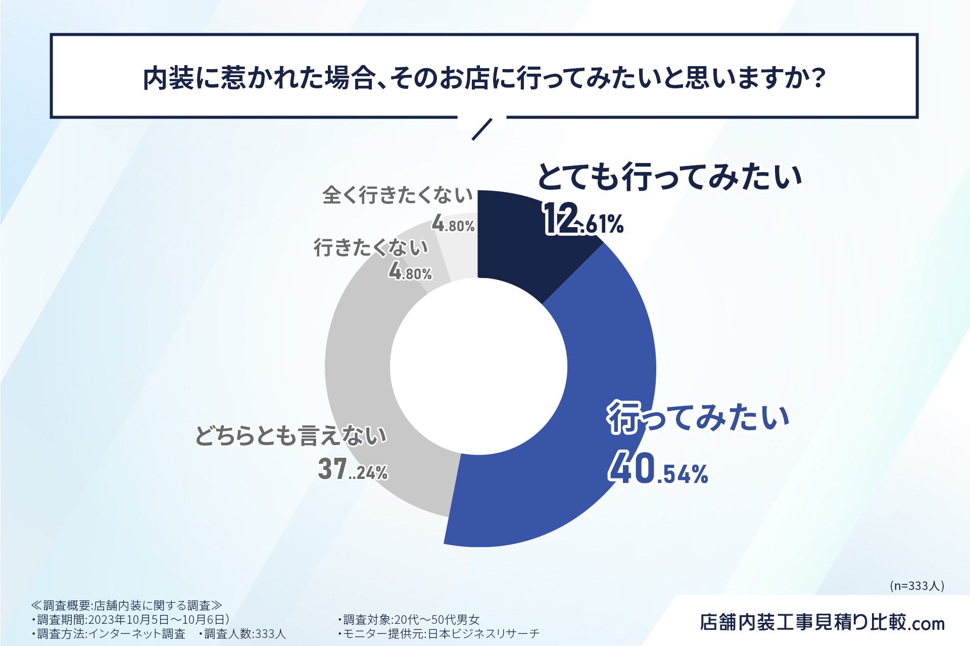 内装に惹かれた場合、そのお店に行ってみたいと回答した割合は?