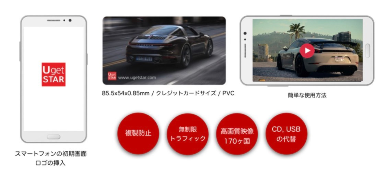 UgetSTARはYouTubeと同様のFULL HD (1080P)の映像画質を提供しつつ、広告なしで楽しむことが可能。提供可能な国は約170ヶ国。収益はカードの販売を通じて実現。