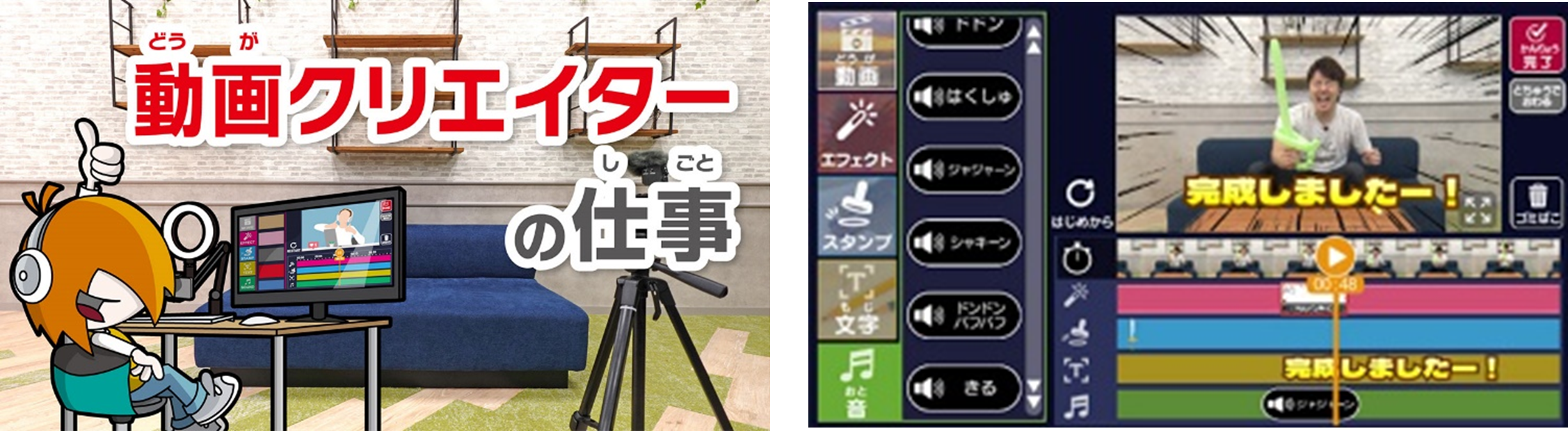 本サービス提供開始1周年にあわせて追加となる「動画クリエイター」コース(以下 本コース)では、こども達のなりたい職業ランキングの定番である動画制作の仕事を、第一線で活躍する日本一身近な動画クリエイターのMasuoさんと一緒に学ぶことができます。本コースでは、自分らしさを最大限に活かすためのコンテンツ作りや視聴者にわかりやすく伝えるための工夫など、動画クリエイターの仕事における大切なポイントやこだわりについて学んだあと、実際にエフェクトや音楽などを施して本格的な動画編集を体験します。