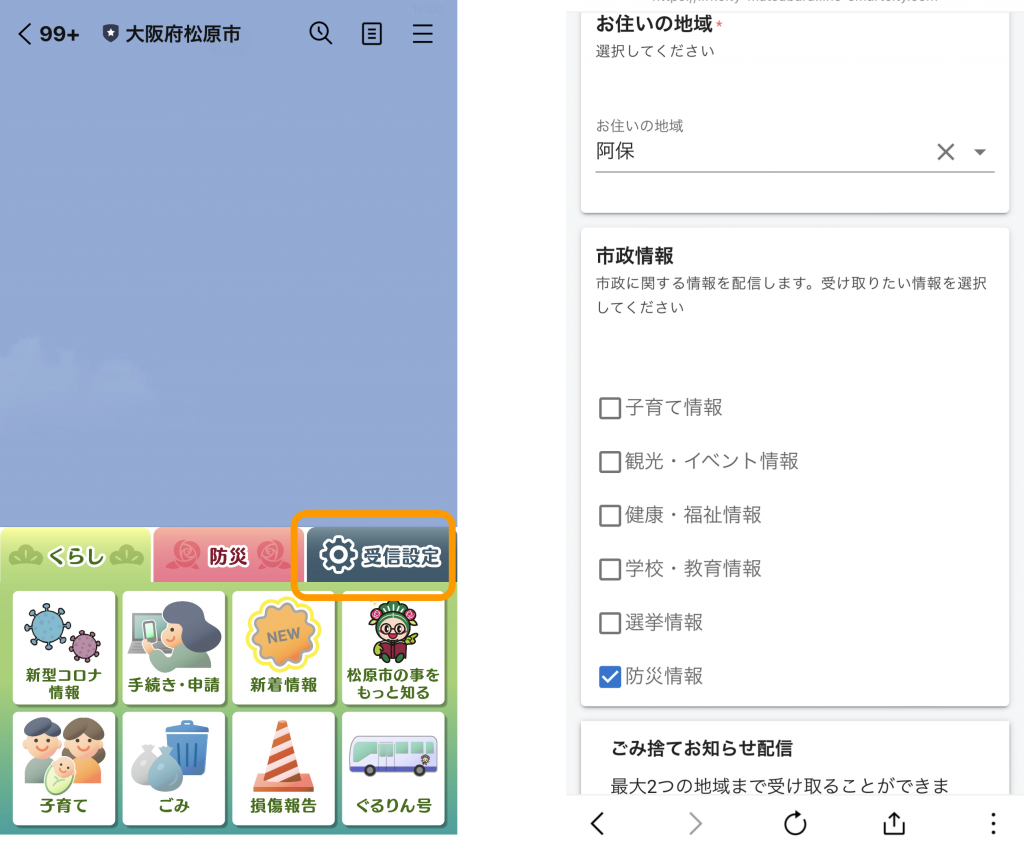 これまではLINEに登録している全ての住民に送られていた配信ですが、リニューアル後からは欲しい配信カテゴリーを選択することができます。