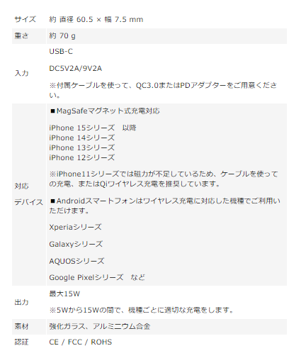 ※ご購入前に、お手持ちのスマートフォンの機種がMagSafe充電、またはワイヤレス充電に対応しているかを必ずご確認ください。