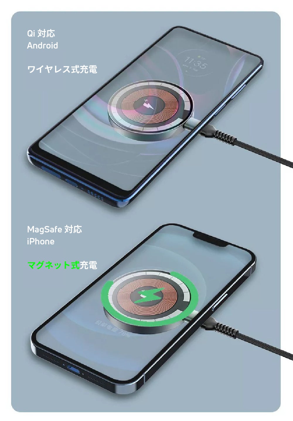 ● 対応Androidスマートフォンなどもワイヤレス充電ができる