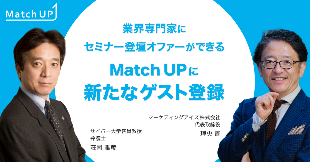 当社は、国内最大級のオンライン展示会「ITトレンド」や、ビジネス動画プラットフォーム「チラヨミ」を通して、多くの企業様、業界専門家の方とのお取引があり、自社のマーケティングノウハウを活かし、このような課題を解消するため、業界専門家にセミナー登壇オファーができるマッチングプラットフォーム「Match UP」の提供を開始いたしました。