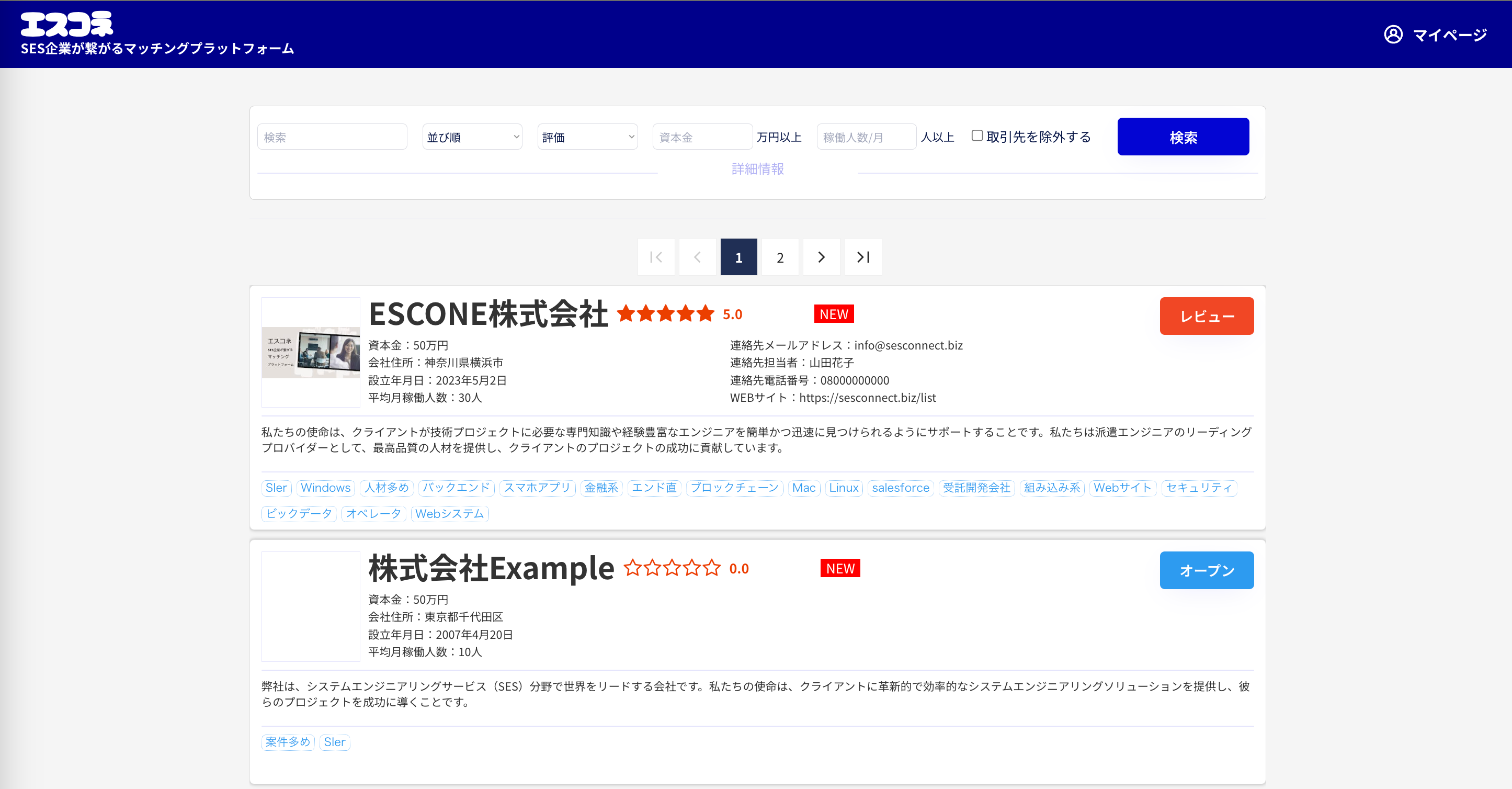 新しいSES企業のマッチングプラットフォーム『エスコネ』は、2023年10月よりサービス提供を開始し、多くのSES企業の営業活動を強力にサポートします。 「エスコネ」はSES企業同士の協力を奨励し、業界の成長を支えます。 SES企業には情報の一元管理、容易な連絡先情報へのアクセス、評価を通じて信頼性の高いビジネスパートナーを見つけるメリットがあります。業界内での競争力を高め、新たなビジネス機会を発見しましょう。 また、現在はサービスリリースを記念して利用制限が解除されているため、この機会にご利用ください。