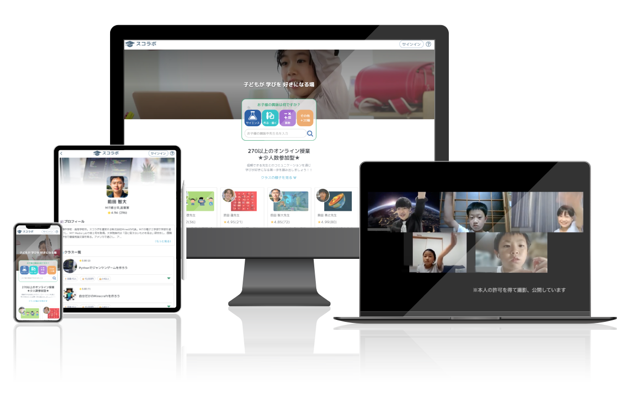 「スコラボ」は、先生や友達と対話を通じて学ぶことができるオンラインライブクラスを受けるための教育プラットフォームです。
