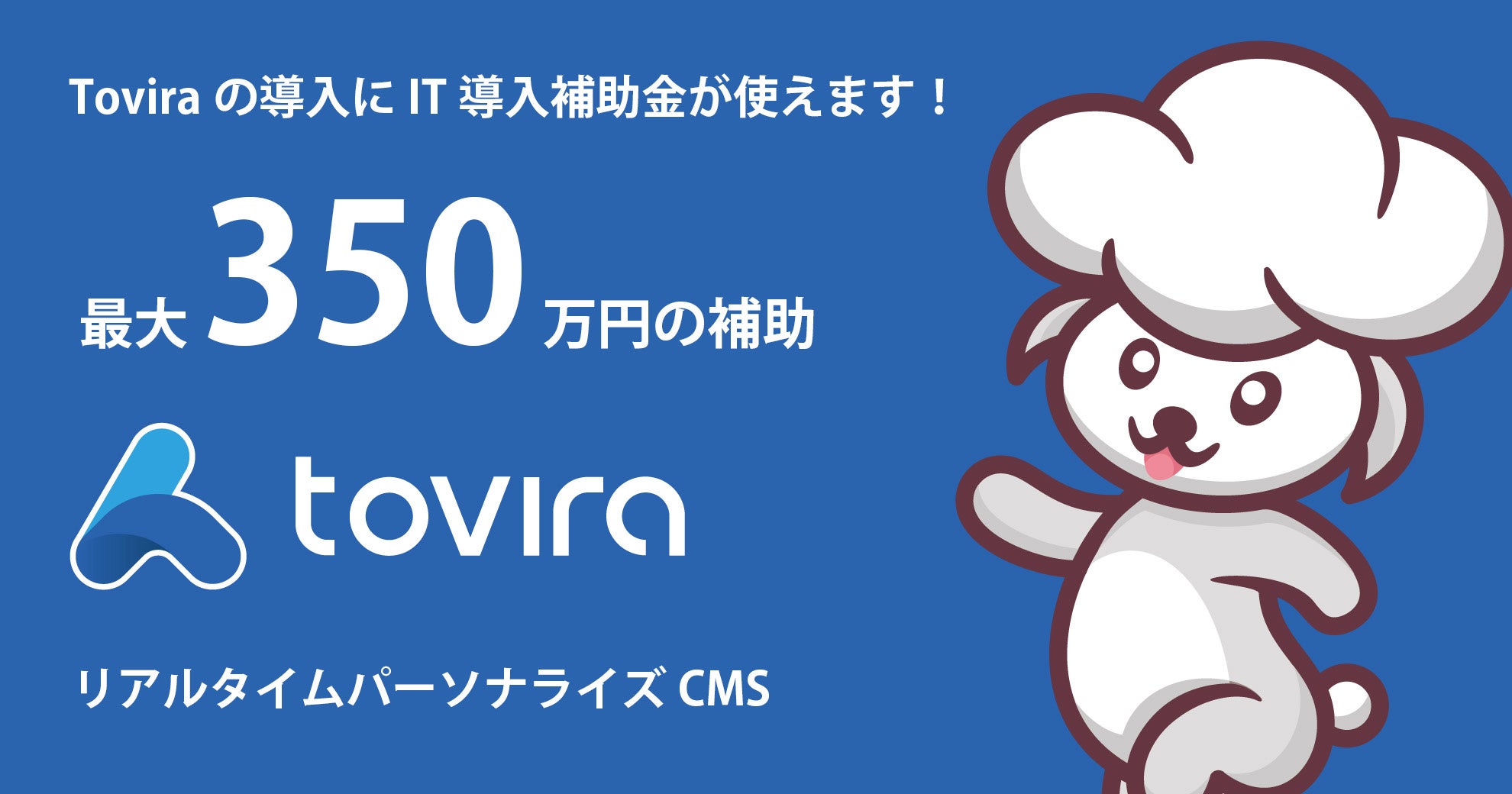 これにより「IT導入補助金2023」において補助対象となるお客さまは「Tovira」を導入いただく際に、利用料金を対象に補助率3分の2以内、最大350万円の補助金を申請することが可能です。
