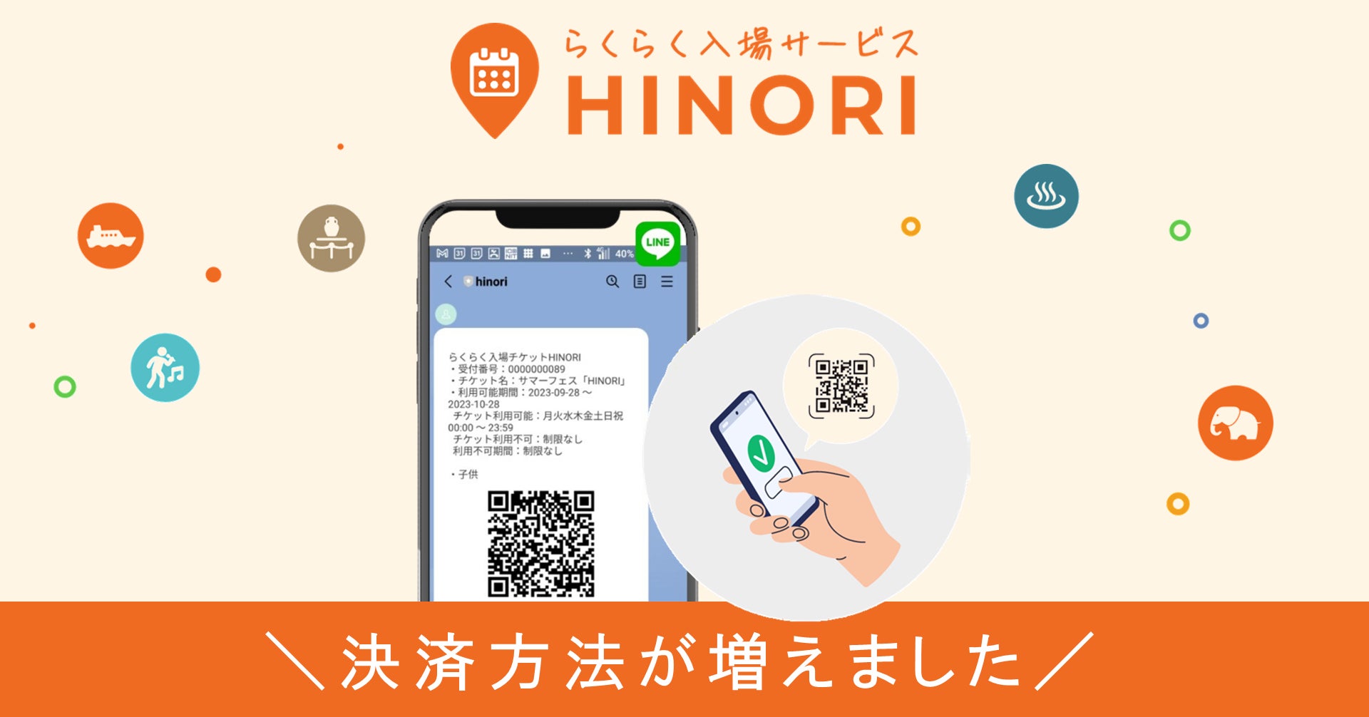 LINEでカンタンにチケット販売ができる【らくらく入場サービス HINORI】は、現在温浴施設やフィットネスクラブ、美術館やプロジェクションマッピングなど、多種多様な施設・事業社様に導入頂いております。