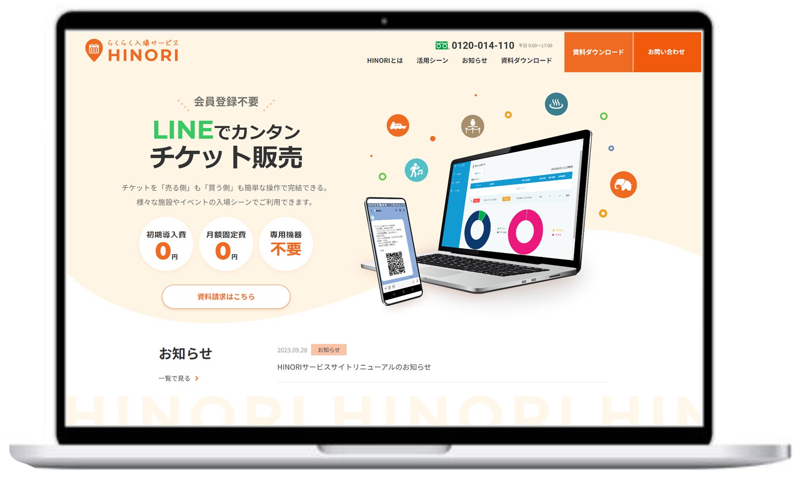 更なるサービスの拡大を目指し、構成やデザインを全面的に刷新しました。サービスサイトでは、【らくらく入場サービス HINORI】の使いやすさや機能・料金プランなどが、よりわかりやすくなりました。また、皆さまが導入した時のイメージがしやすいように、具体的な活用例や事例を入れました。これからも、常時新しい情報をお届けし、皆様に使いやすいサイトを目指して、内容を充実させて参ります。