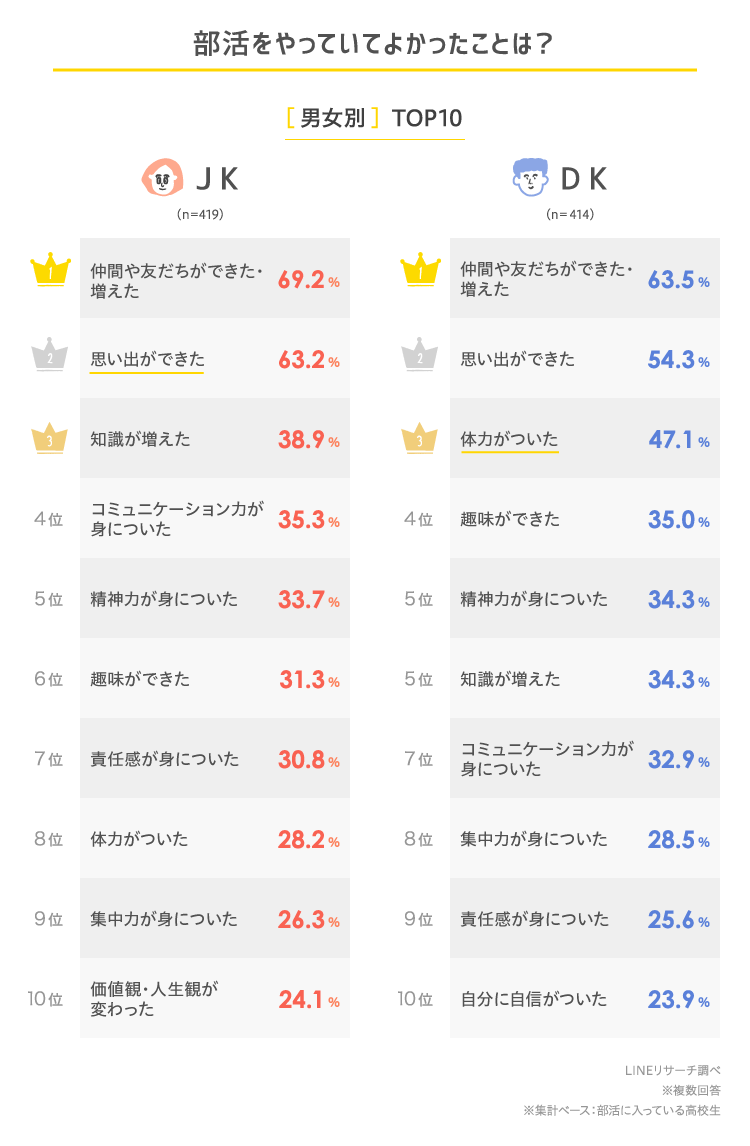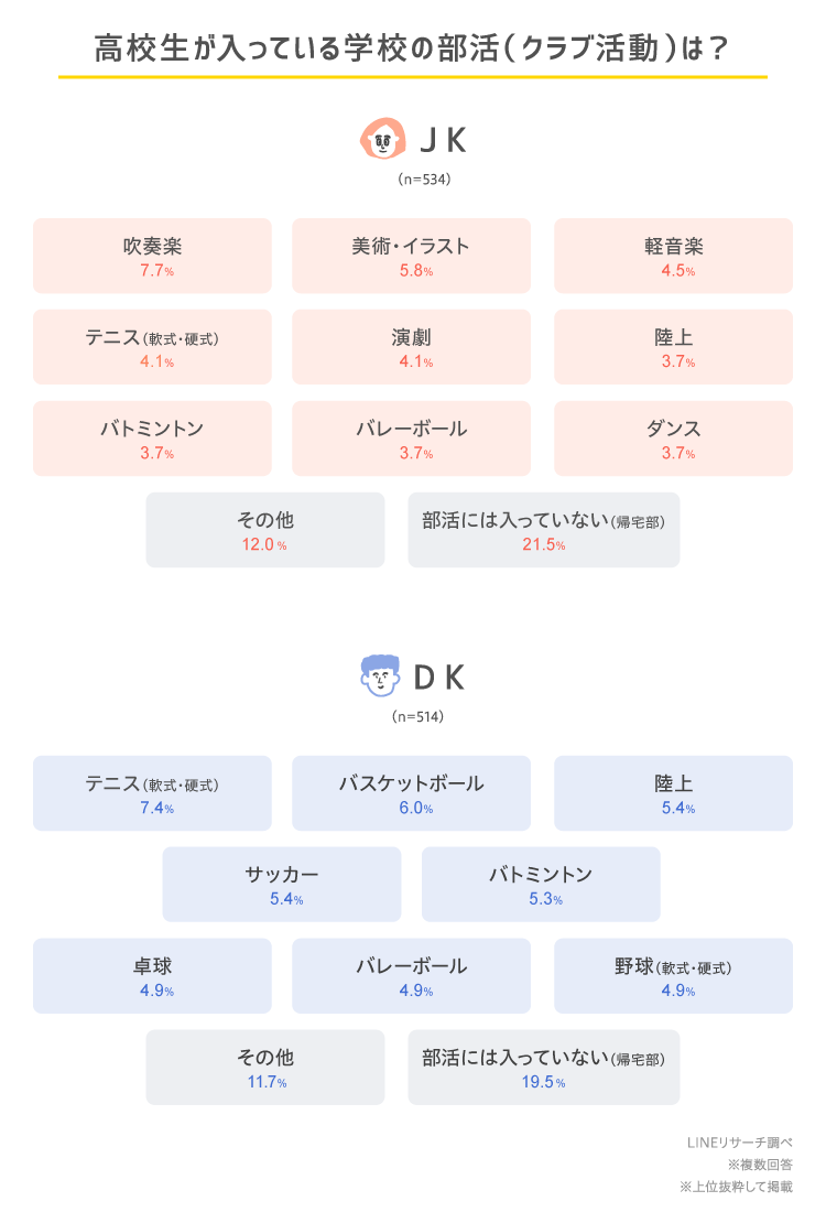 このたびLINEリサーチでは、日本全国の高校1年生~3年生の男女を対象に、高校生の部活に関する調査を実施しましたので、その結果をお知らせします。