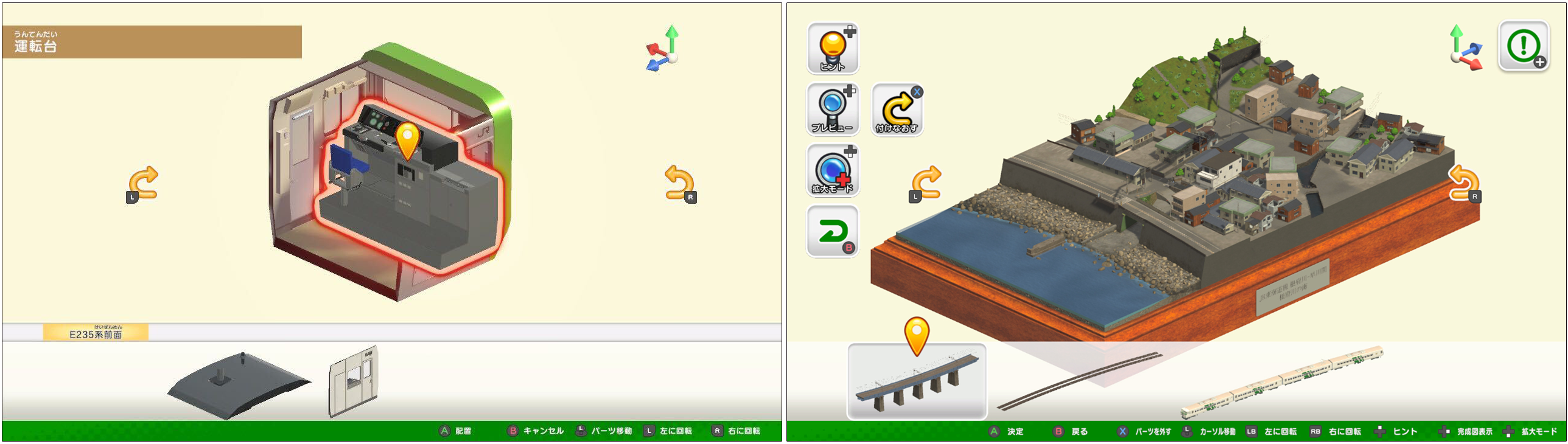パズル感覚で車両部品をくっつけて、プラモを作成するゲームモードです。