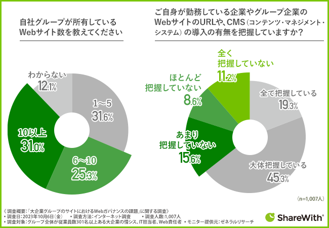グループ内のWebサイトのURLや、CMS導入の有無について、約3.5割は把握できていないという結果に
