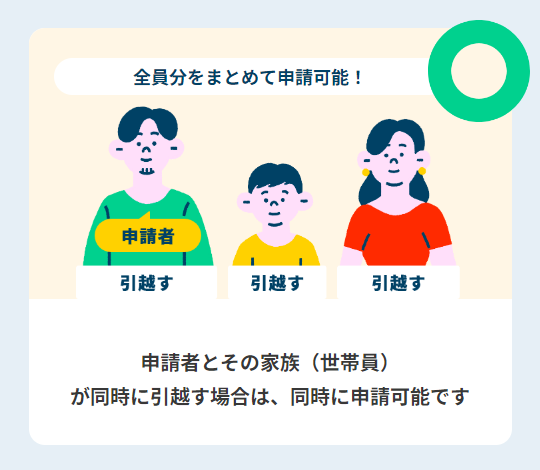 引越しをする本人と、一緒に引越しをする方の申請が可能です。