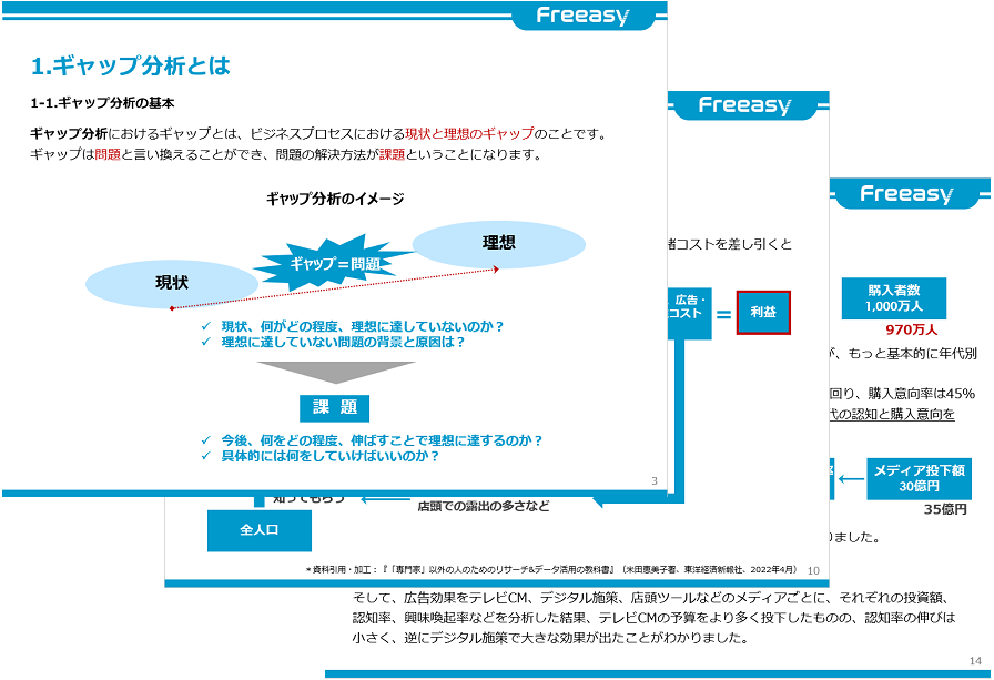 「ギャップ分析」について、基本知識、分析の具体的な進め方、細分化する方法などを、事例とともに解説しています。