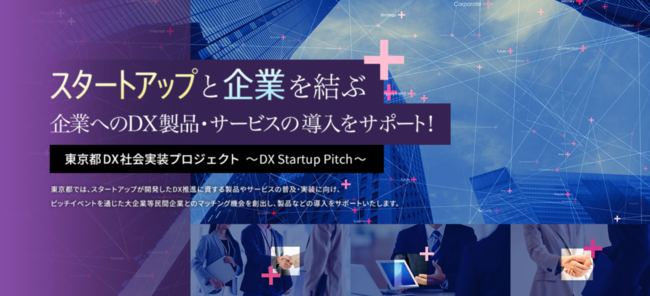 スタートアップが持つDX製品・サービス等の民間企業への導入やアライアンス契約に向け、スタートアップと民間企業の意思決定権者含むDX推進に関心の高い担当者とのつながりの場の提供や本格導入に向けた専門家による支援を通じて、DXの社会実装の実現を目指すプロジェクトです。