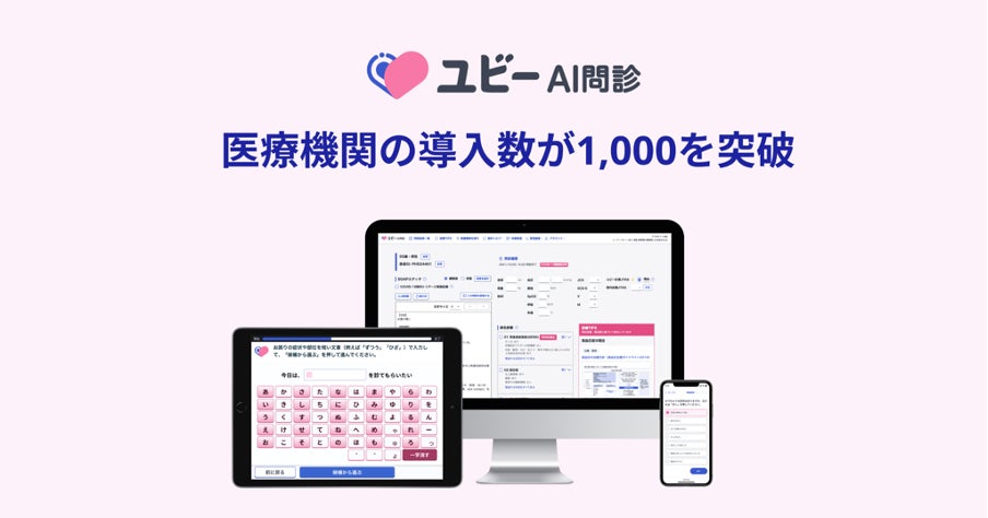 2017年サービス提供を開始した「ユビーAI問診」は、紙の問診票のかわりにスマートフォンやタブレットを活用した、医療機関の業務効率化のための問診サービスです。医師は、カルテ記載に伴う事務業務の削減により、患者さんと向き合った診療により一層集中でき、患者さんは、診察前の時間を活用し自身の症状を詳しく伝えられるようになります。働き方改革への意識が高まる全国の急性期病院を中心に導入数を伸ばし、その後コロナ禍での滞在時間短縮や来院前の事前トリアージなど、患者さんやスタッフの安心・安全対策を目的とした業務効率化観点でクリニック・診療所など「かかりつけ医」でも導入が広がっています。