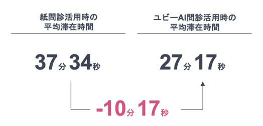 <ユビーAI問診活用による患者さんの滞在時間短縮事例>
