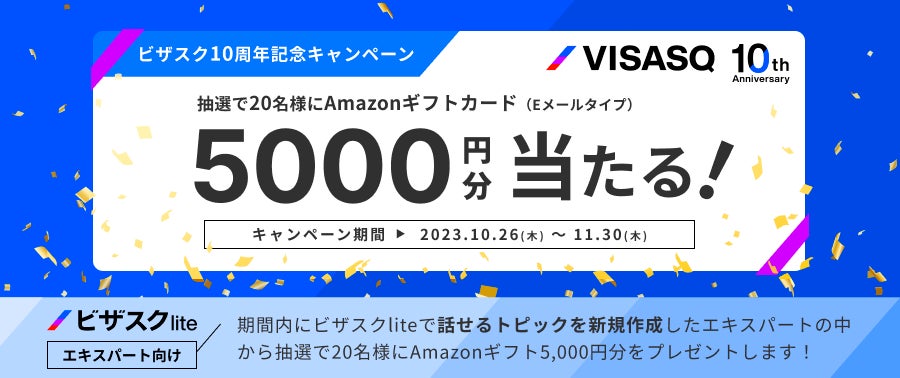 ・対象者:キャンペーン期間内に「ビザスクlite」で話せるトピックを新規作成したキスパートの方