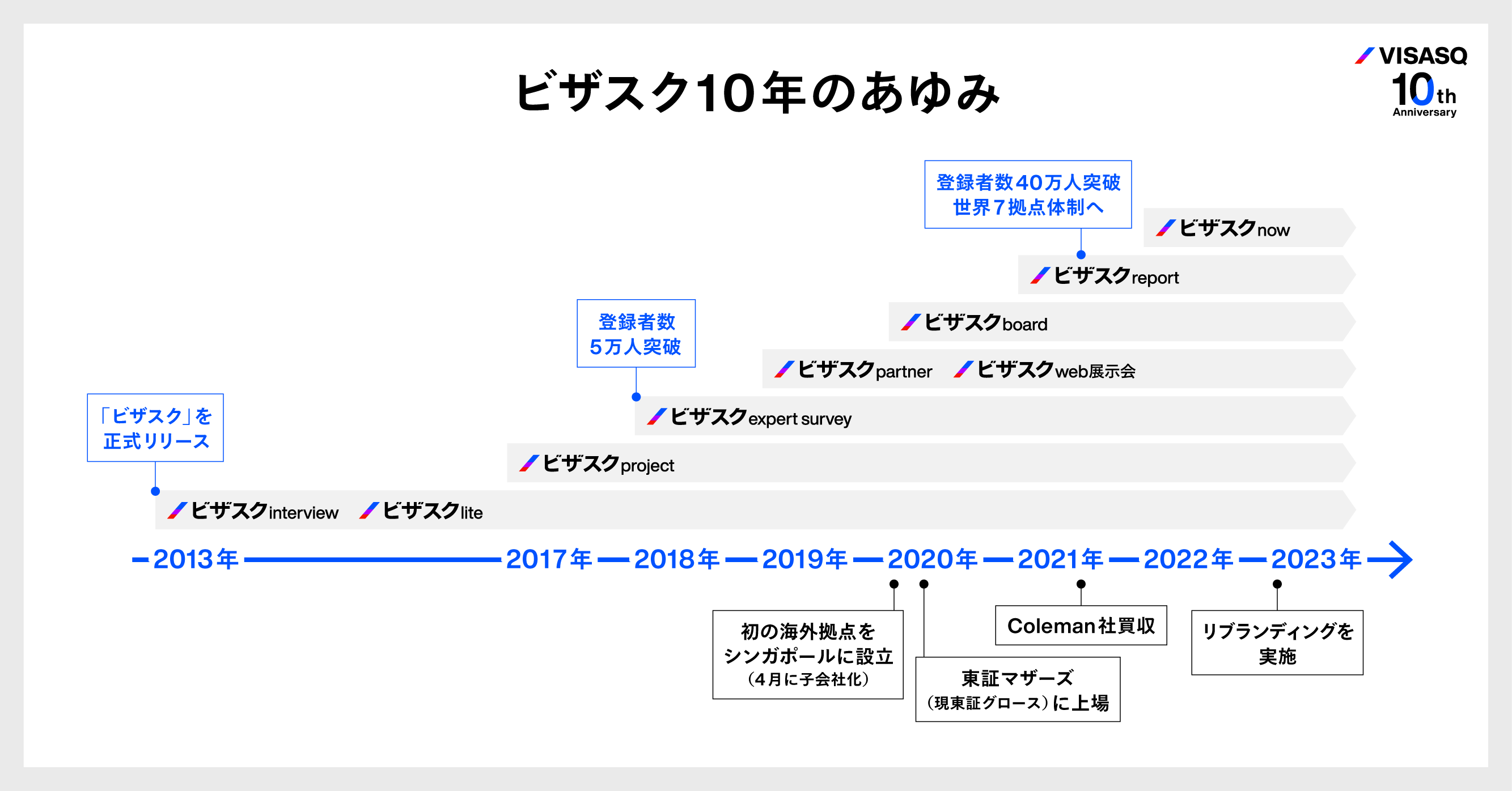 2013年のサービス開始から10年、主力事業サービスである1時間単位の有識者インタビューサービスに加え留まらず、ご依頼者の皆様のニーズに応え応じて、様々な新サービスをリリースしてまいりました。