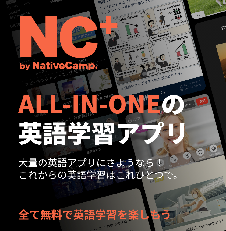 近年、多くの英語学習者の中で各英語技能をバランス良く向上させたいというニーズが高まっていますが、世の中には英語学習アプリが多数存在し、英単語を学びたい時は〇〇、発音を学びたい時は〇〇など、学びたいスキルに応じてアプリを使い分けるため、端末にいくつもの英語学習アプリをインストールしなければならない状況にあります。それを受け、ネイティブキャンプはアプリ一つで英語学習者に必要なスキルを学習できるオールインワンの英語学習アプリを作るために開発を重ね、「NC+(エヌシープラス)」の提供を開始しました。