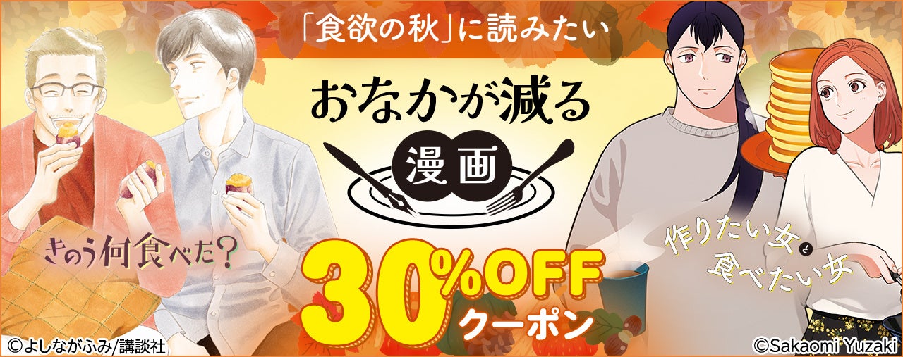 西島秀俊・内野聖陽ダブル主演の人気ドラマ「きのう何食べた? season2」の原作漫画『きのう何食べた?』や、ドラマの続編も決定した女性二人の日常を描く人気漫画『作りたい女と食べたい女』など、「auブックパス」では、読むと思わずおなかが減ってくる漫画を特集いたします。また、グルメ漫画やレシピ付き漫画など、対象作品に使える30%OFFクーポンも期間限定で配布。食欲の秋、実りの秋にぴったりの漫画を、ぜひお得なこの機会にお楽しみください。