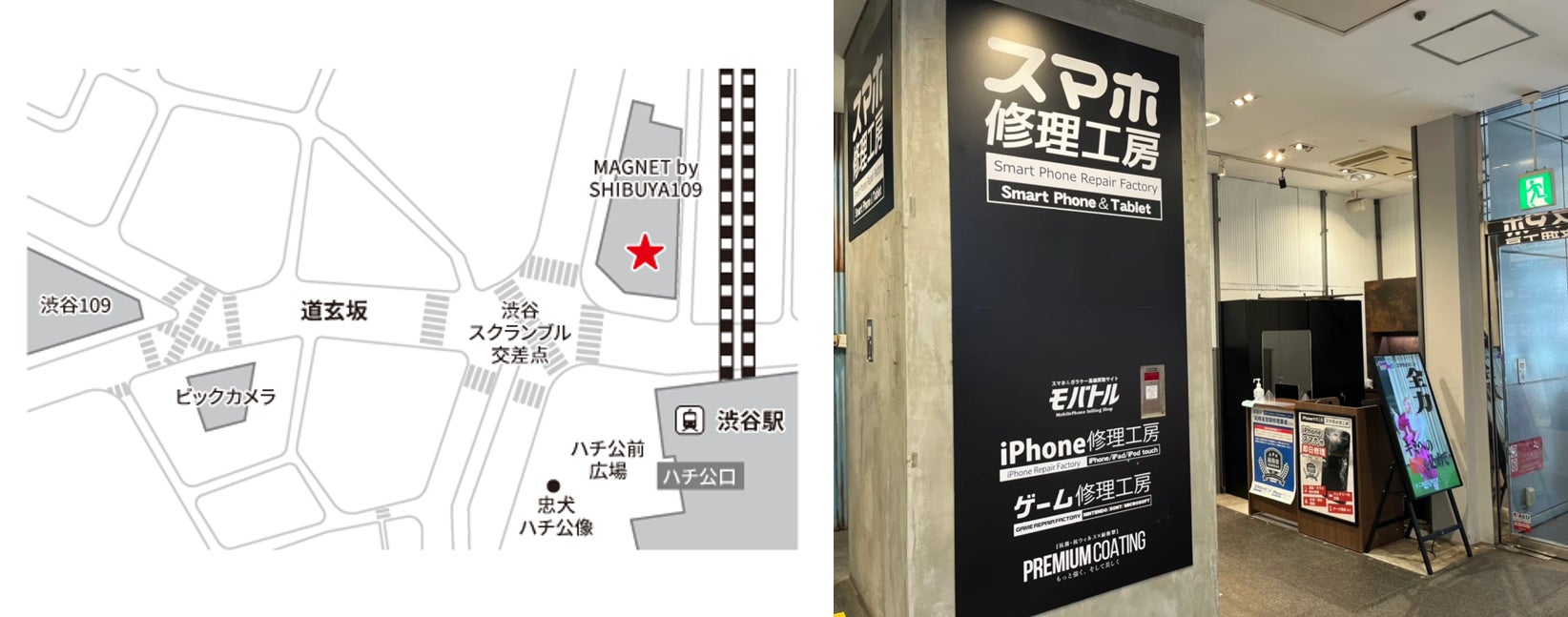 渋谷エリアでは現在、渋谷マークシティ4階の「クリエーションスクエアしぶや」、渋谷フクラス1階の観光案内所「shibuya-san」の2カ所にWiFiBOXの設置をしております。JR渋谷駅ハチ公口から徒歩約1分に位置するMAGNET by SHIBUYA109の1階に入る「スマホ修理工房 渋谷店」への設置により、JRや東京メトロおよび東急線の渋谷駅や宮益坂エリアに近い場所での受取・返却が可能となります。