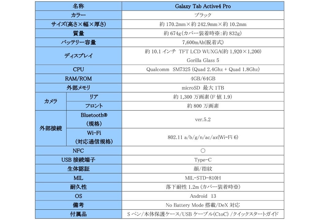 「Galaxy Tab Active4 Pro」の詳細について
