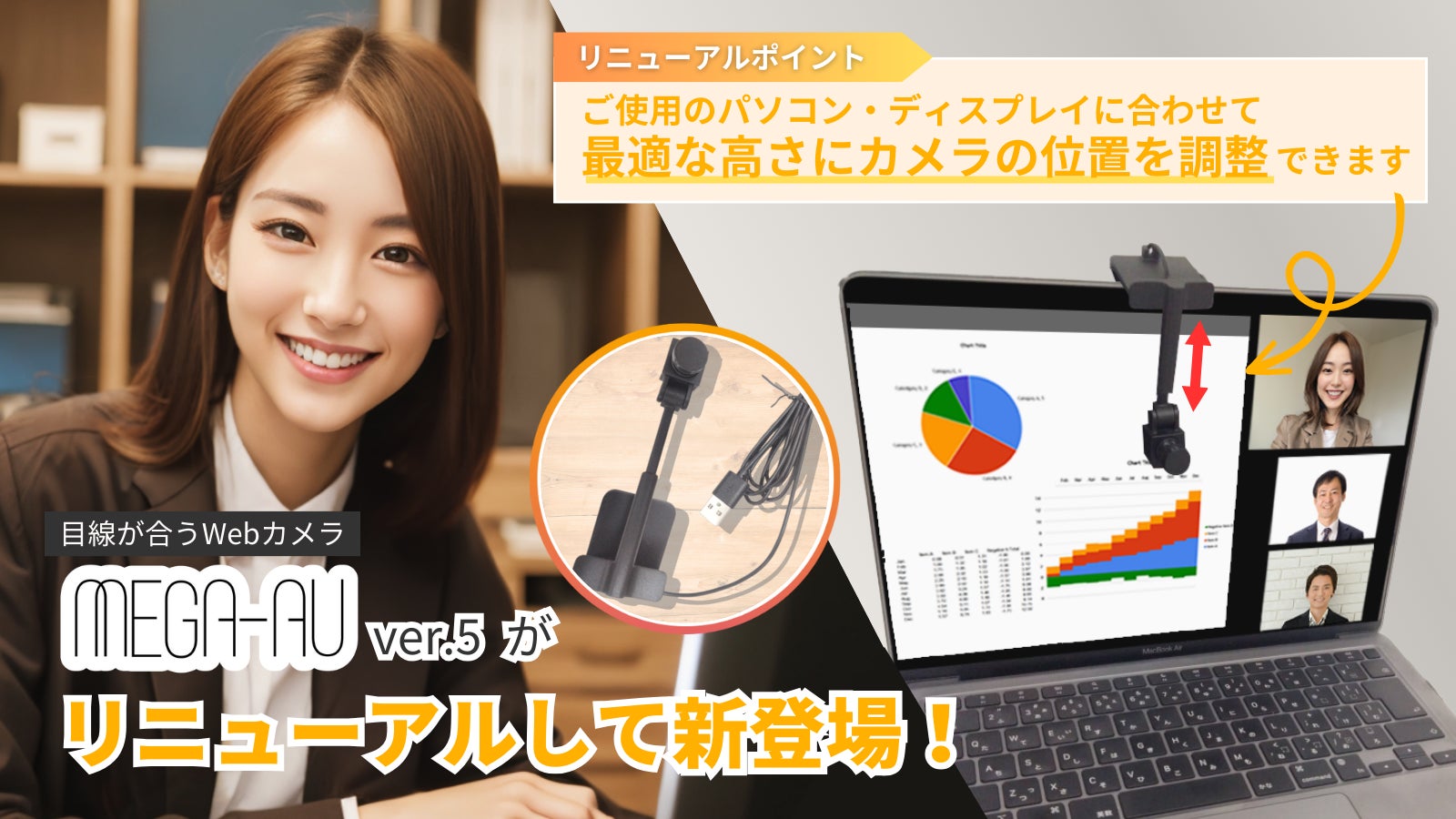 【最大30%OFF】目線が合うWebカメラ“MEGA-AU ver.5”がMakuake(マクアケ)で先行販売開始!カメラの高さ調整ができるようになり、さらに便利になりました