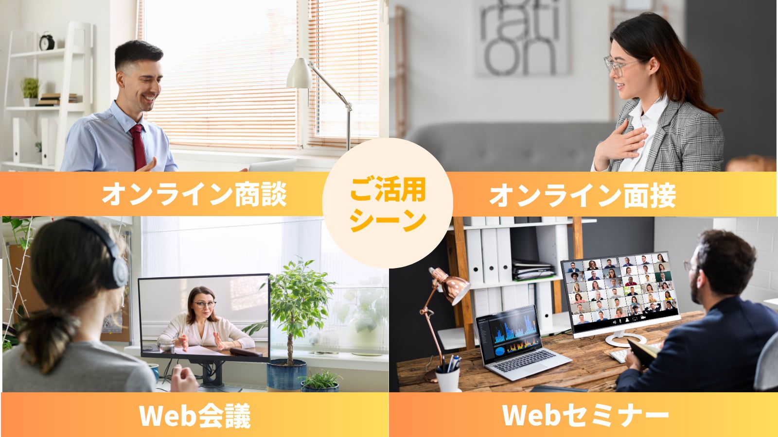 通常のWeb会議はもちろん、大切なプレゼンや商談、就活面接やセミナーなど様々な用途でご使用いただけます。資料を画面上に表示しながら会話をしても、目線がずれることはありません