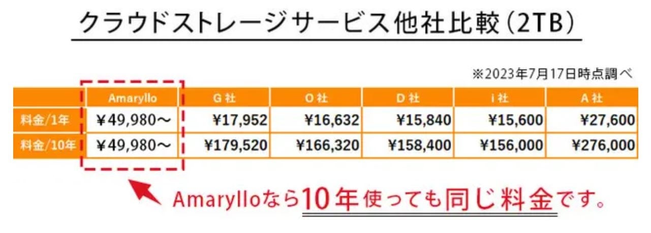 Amaryllo(アマリロ)の一番の特徴は、生涯のクラウドストレージにかけるお金が圧倒的に安くなる点です。