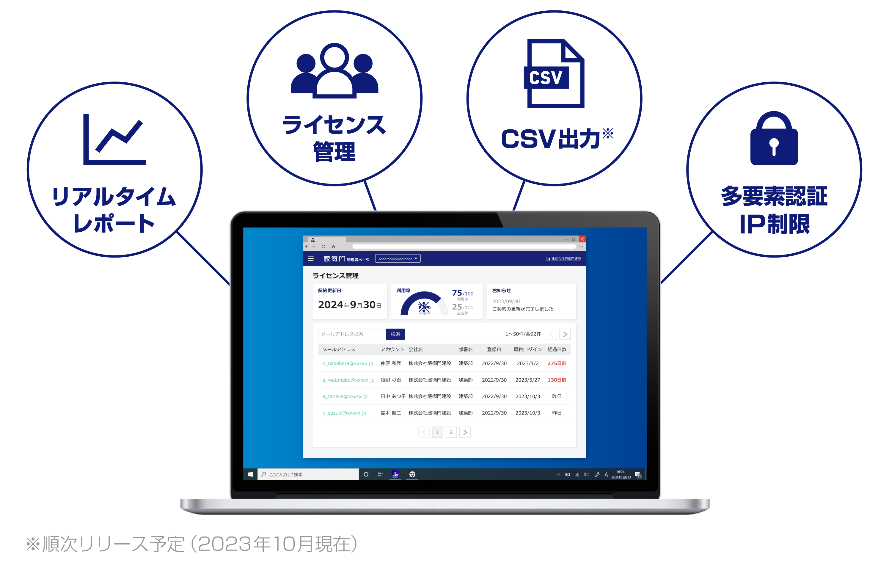 新たに公開した二要素認証機能に加えて、IPアクセス制限機能や、利用者のログイン履歴閲覧が可能な運用管理機能も利用できます。これにより、不正利用を効果的に防ぐことができます。『蔵衛門クラウド』は、これらのセキュリティ機能を組み合わせて、貴重な「工事情報」などの機密情報を保護します。なお、『蔵衛門クラウド』を運営するルクレは、情報セキュリティマネジメントシステム(ISMS)の国際規格である「JIS Q 27001:2014(ISO/IEC 27001:2013)」の認証を取得しており、内部的な対策も万全で運営しています。