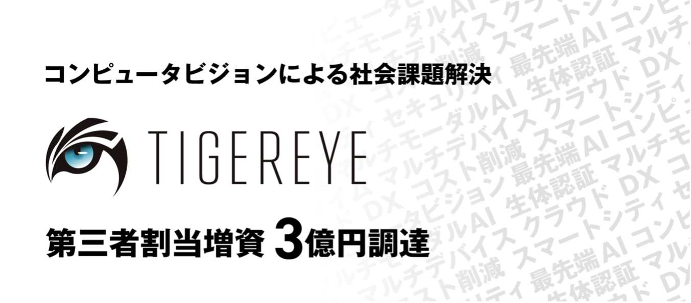 AIによるコンピュータビジョンの先駆けとして、一貫して最先端のサービスを提供してきた株式会社TIGEREYE(本社:東京都中央区、代表取締役:上村学、以下TIGEREYE)は、投資家および経営陣を引受先とした第三者割当増資により、本日総額3億円の資金調達を実施しました。資本金等の総額は3億1,000万円となります。