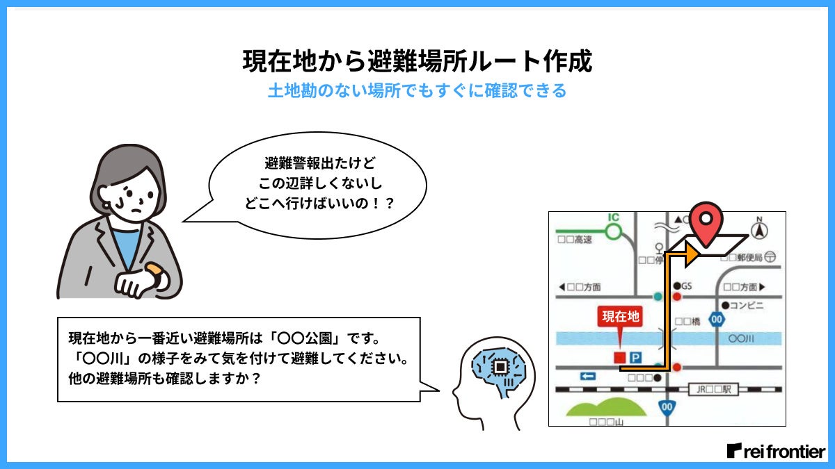 ・土地勘のない場所で現在地から避難場所までの最短ルートを作成