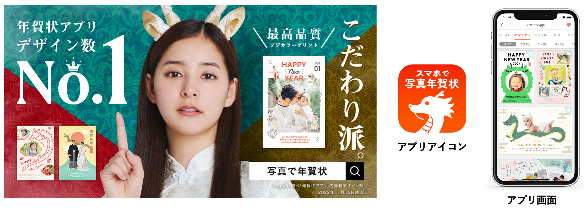 ※1:Appliv調べ「年賀状アプリ」内掲載デザイン数 2022年11月15日時点 ※2:デザインは12月初旬にかけて順次公開