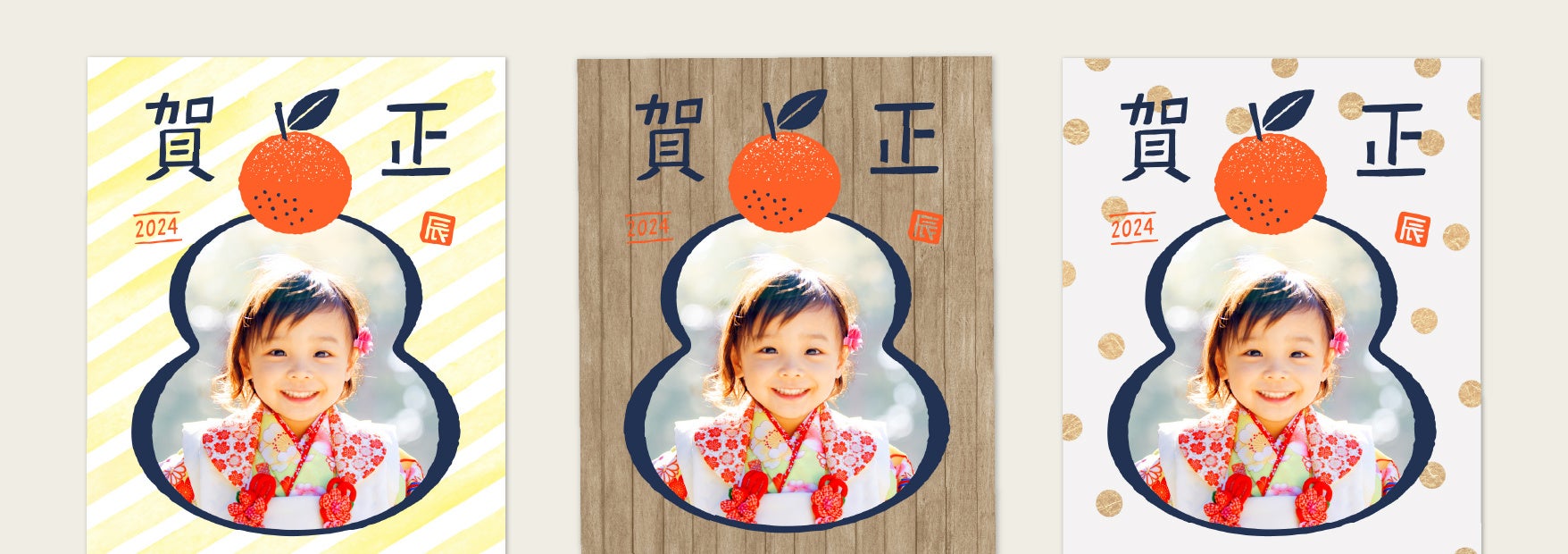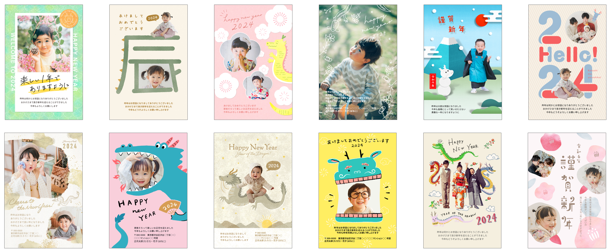 子育てファミリーにうれしい、子どもの写真が映えるデザインが充実しています。シンプル、かわいい、和風などお好みや写真の雰囲気にあわせて選べる豊富なバリエーションをご用意しています。