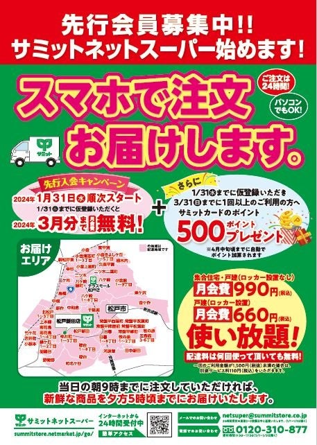 サミットストア松戸新田店は、2024年1月31日(水)より、「サミットネットスーパー」を開始します。