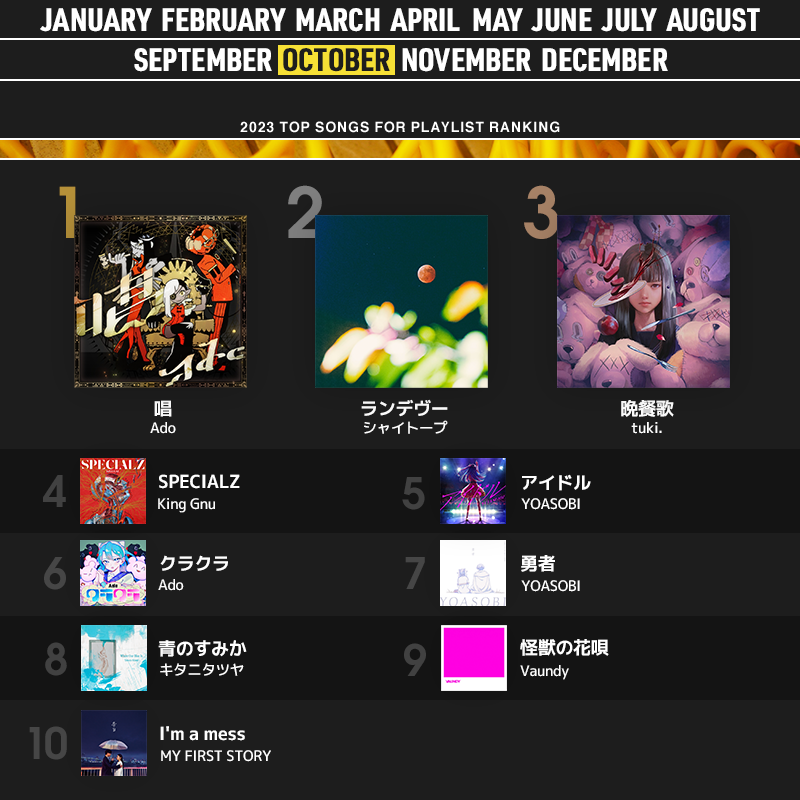 ■2023年10月度プレイリスト採用楽曲ランキングTOP10