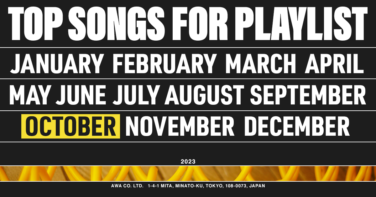 AWA株式会社(本社:東京都港区、代表取締役CEO:冨樫晃己)が運営する、サブスクリプション型(定額制)音楽ストリーミングサービス「AWA(アワ)」は、2023年10月1日(日)から10月31日(火)までに、ユーザーが作成したプレイリストへ採用された楽曲を集計し、10月度の『プレイリスト採用楽曲ランキング』を発表いたしました。